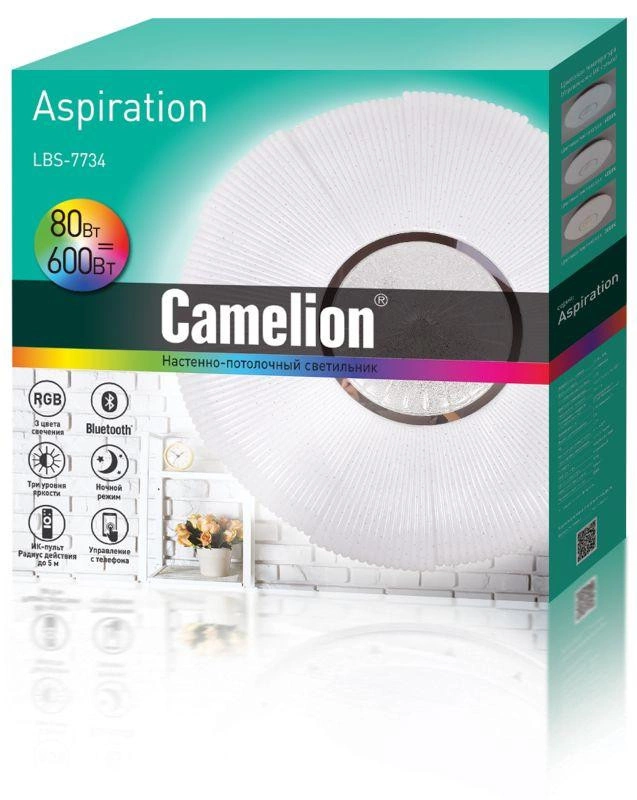 Полное описание: Светильник светодиодный LBS-7734 80Вт 3000-6000К RGB 7800лм настенно-потолочный управляем. пульт бел. Camelion 14528