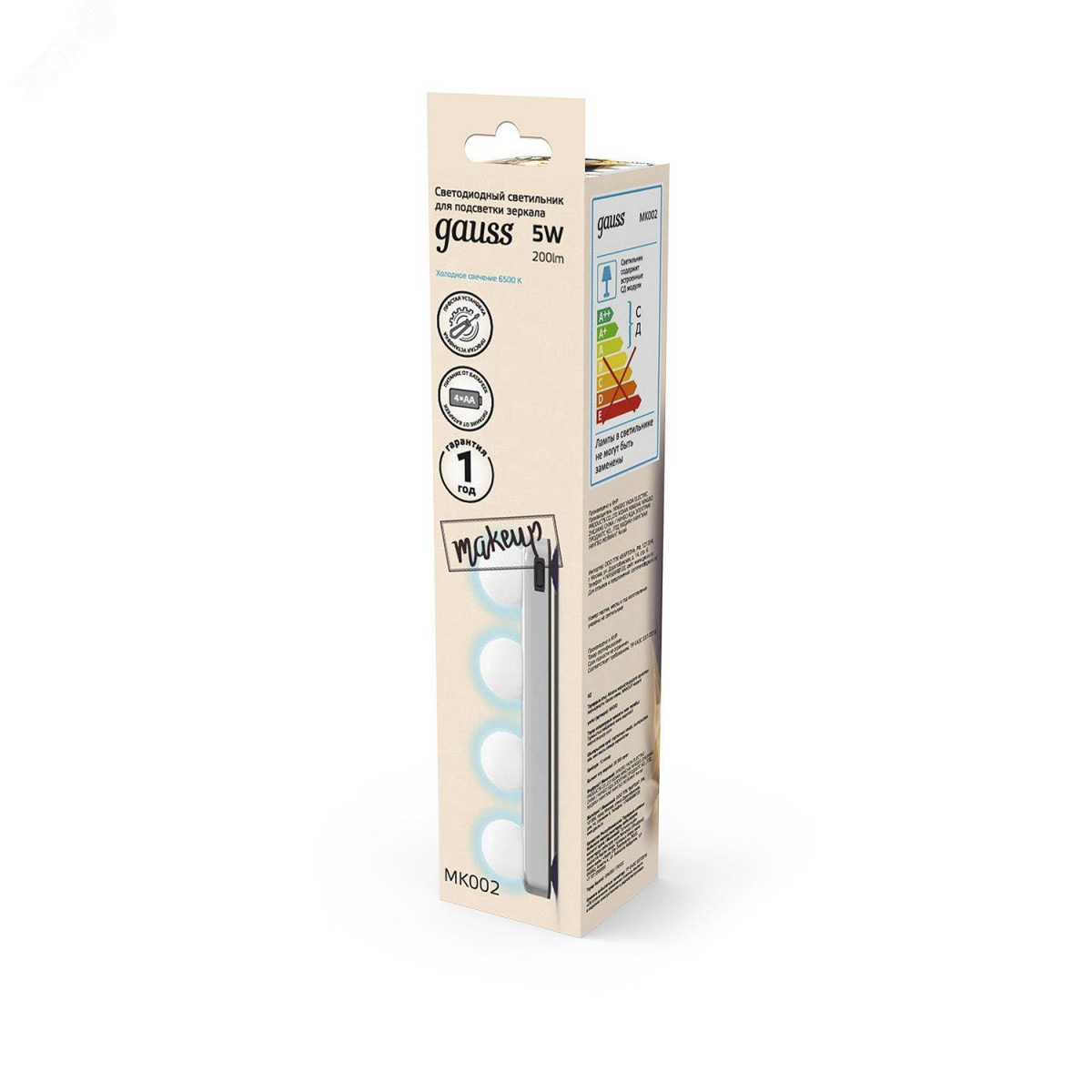 Светильник светодиодный LED ДБП 5 Вт 200 Лм 6500К 305х60х70 мм IP33 для зеркала MAKEUP Gauss