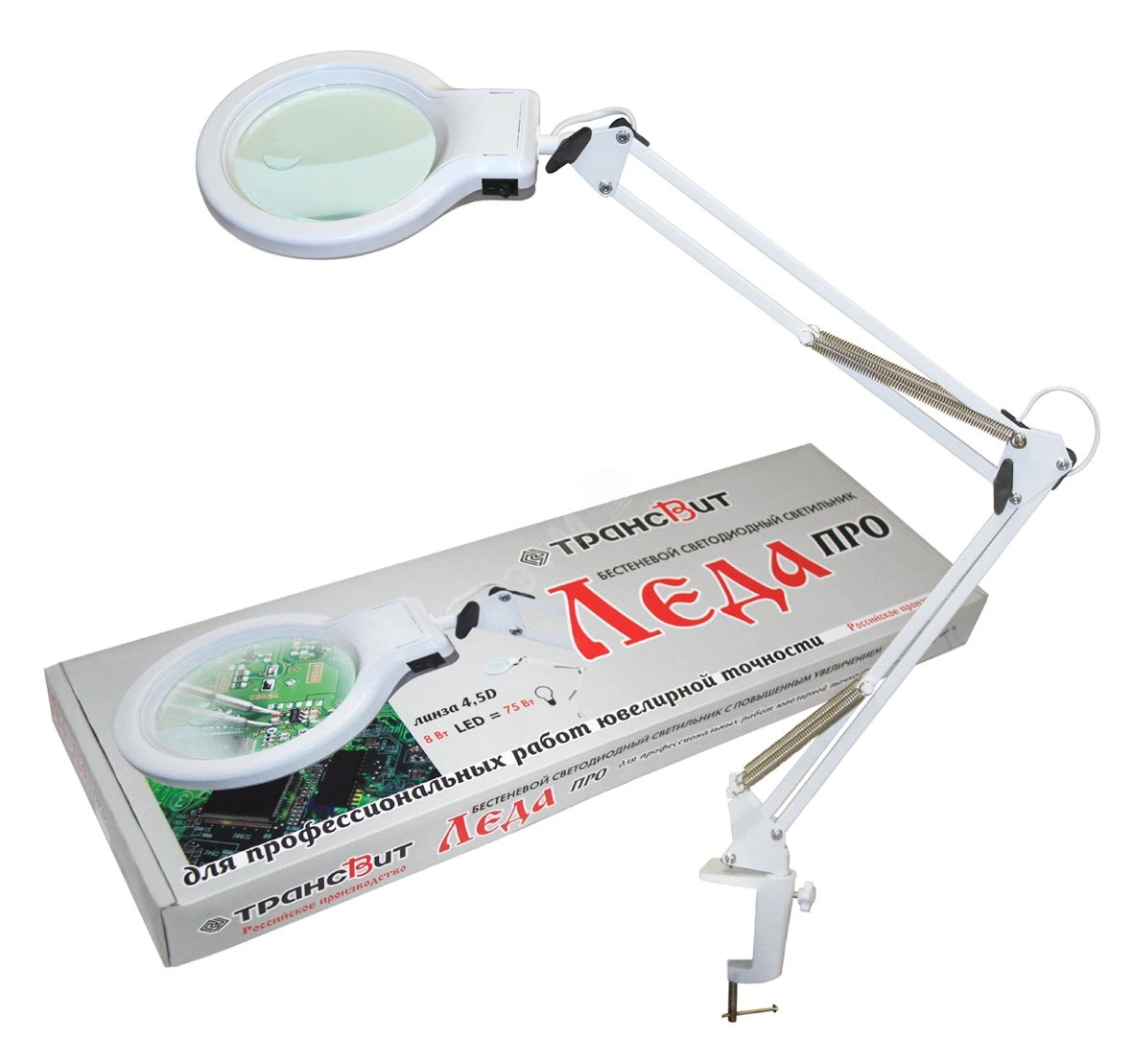 Светодиодный светильник `Леда С20-036` с увеличительной линзой предназначен для работы с мелкими деталями: для рукоделия, творчества, для различной работы в салонах красоты, для работы в ювелирных и часовых мастерских. Также светильник идеально подойдет для освещения и создания высокого светового комфорта на рабочих местах. В корпус светильника встроена линза с увеличением 4,5D и дополнительным 9D. Отличные оптические характеристики и надежность изделия может также заинтересовать инженеров-электронщиков, медицинский персонал, косметологов, дизайнеров, швейных мастерских, для работы с печатными платами и микроэлектронными компонентами.