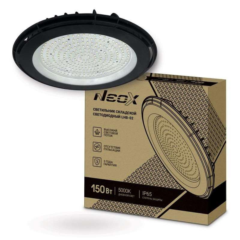 Полное описание: Светильник светодиодный LHB-02 150Вт 120гр 230В 5000К 15750лм 105лм/Вт IP65 складской без пульсации NEOX 4690612042633
