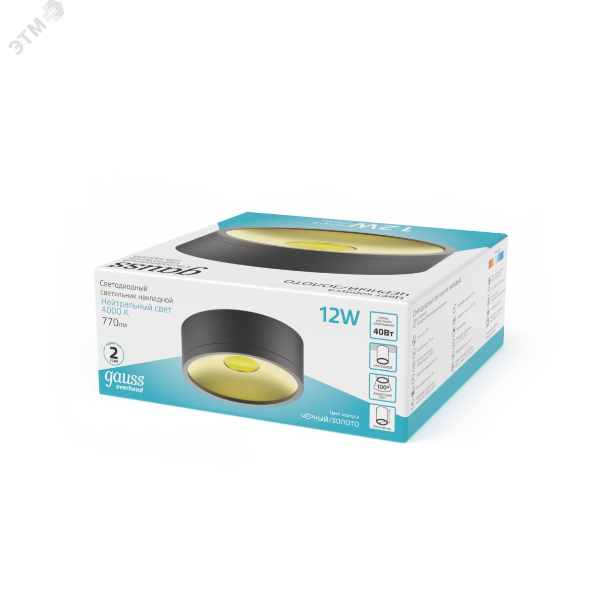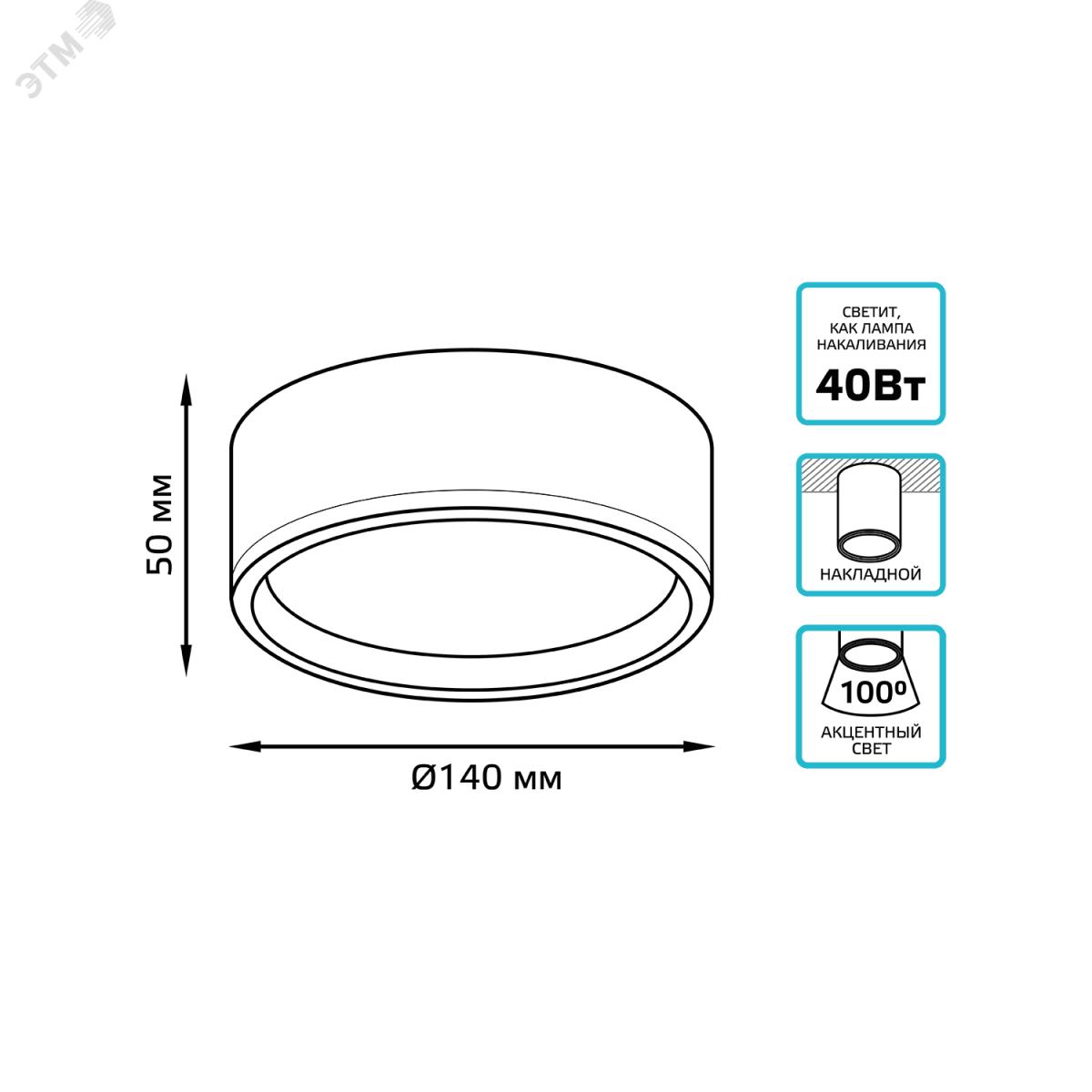 Светильник светодиодный накладной LED ДПО 12 Вт 1100 Лм 4000К IP20 d140х50 мм монт d50 мм Overhead Gauss