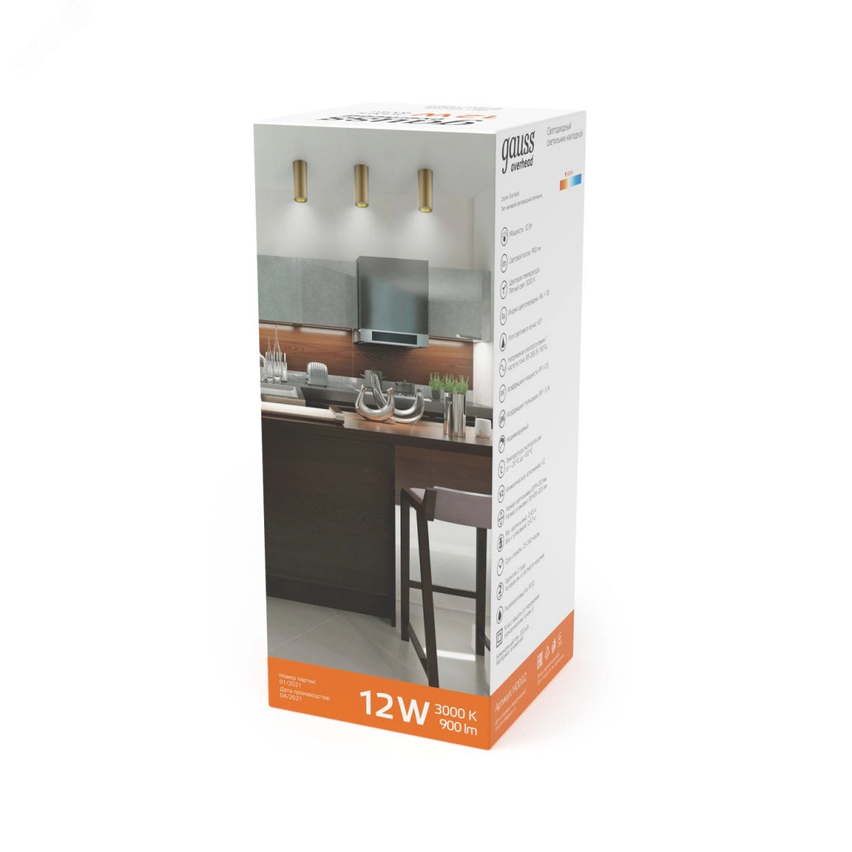 Светильник светодиодный накладной LED ДПО 12 Вт 900 Лм 3000К IP20 d79х200 мм монт d79 мм Overhead Gauss