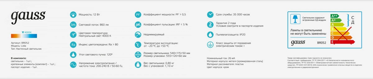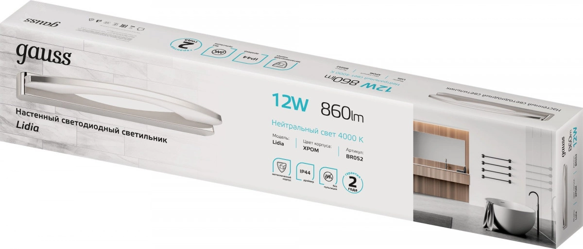Светильник светодиодный настенный ДБП 12 Вт 860 Лм 4000К 540х115х50 мм IP20 Lidia Gauss