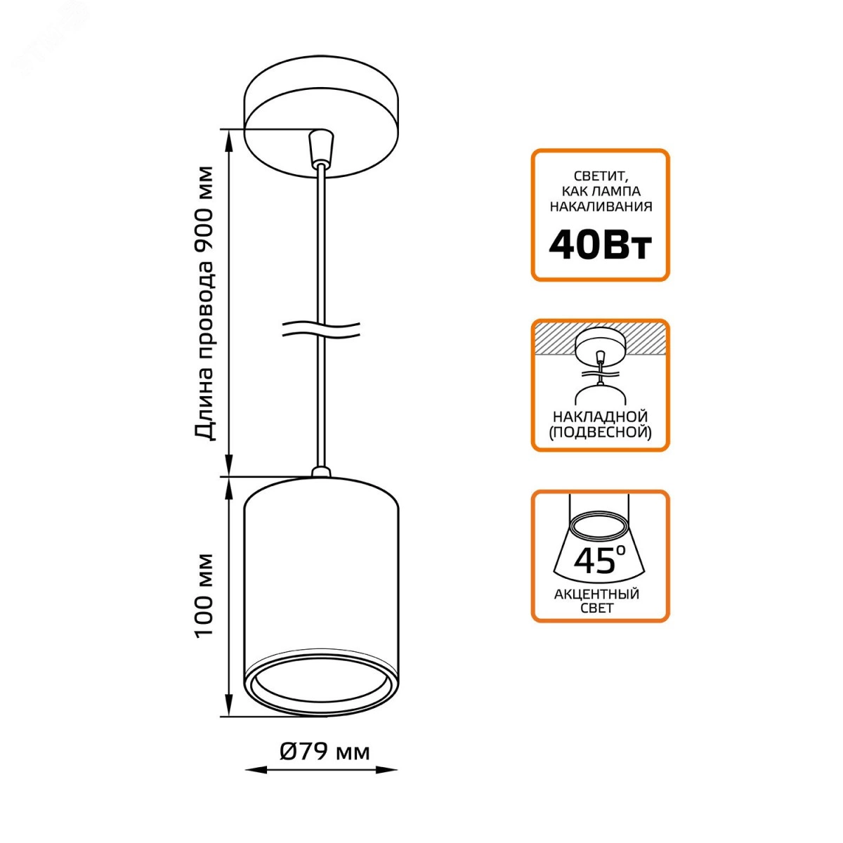 Светильник светодиодный подвесной LED ДПО 12 Вт 660 Лм 3000К IP20 d79х79 мм монт d79 мм Overhead Gauss