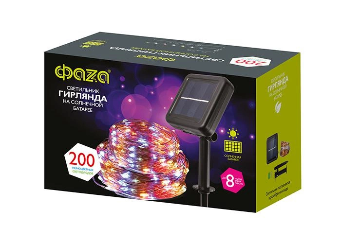 Светильник-гирлянда "ДЕКОРАТИВНАЯ НИТЬ"" с солнечной батареей. Длина 21,9 метров, источник света - 200 светодиодов. Датчик освещенности. Аккумулятор АА 800 мАч. IP 55.