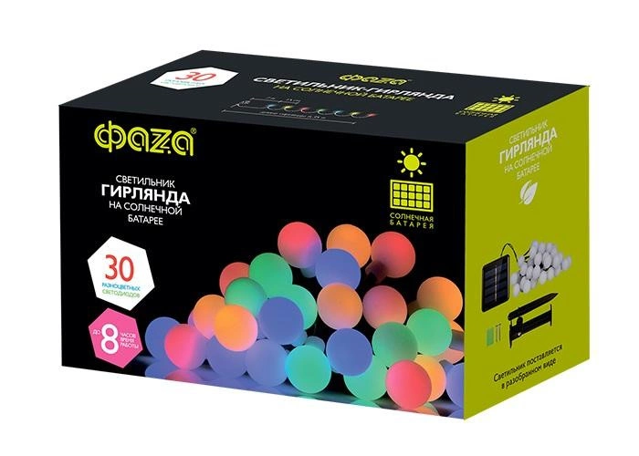 Полное описание: Светильник светодиодный SLR-G07-30M садовый; гирлянда матов. шарики мультицвет солнечная батарея ФАZА 5040847