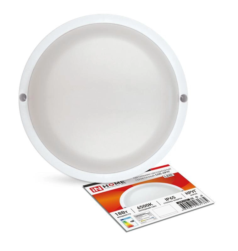 Полное описание: Светильник светодиодный СПП-КРУГ 18Вт 230В 6500К 1440лм IP65 герметичный IN HOME 4690612031385