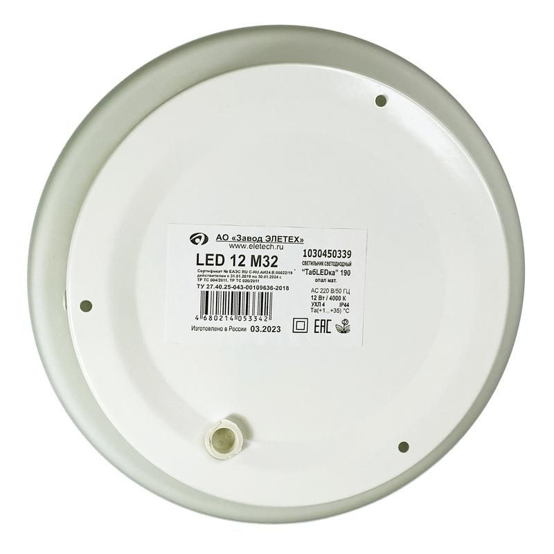 Полное описание: Светильник светодиодный "ТабLEDка" 190 LED 12 M32 12Вт 4000К IP44 190х65 ДПБ опал. матов. (инд. упак.) Элетех 1030450339