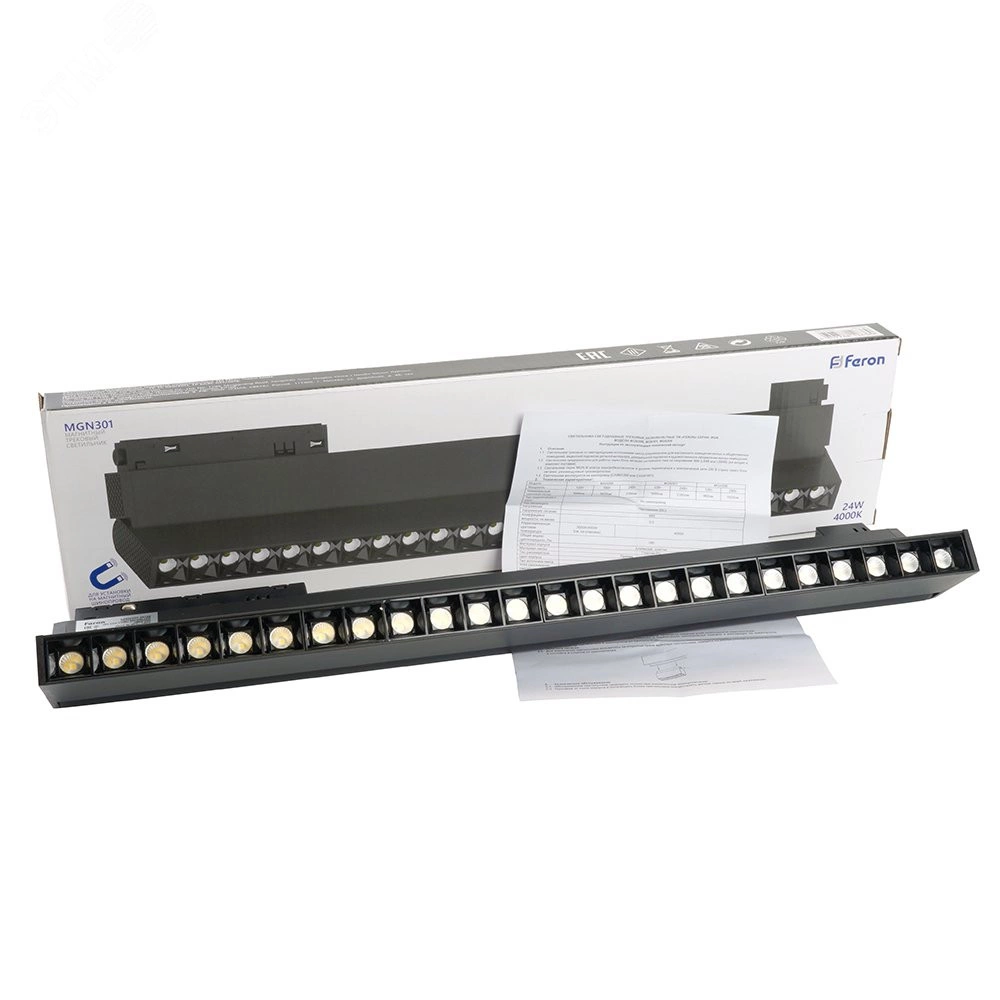 Светильник светодиодный трековый магнитный на шинопровод ДПО-24w 4000К 2160Лм 48v поворотный черный