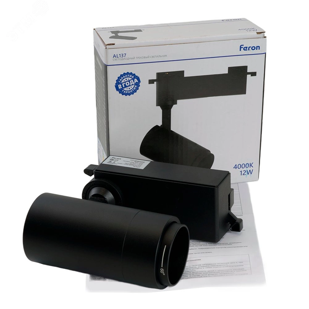 Светильник светодиодный трековый на шинопровод ДПО-12w 4000К 840Лм черный с регулируемым углом освещения 15-60 гр.