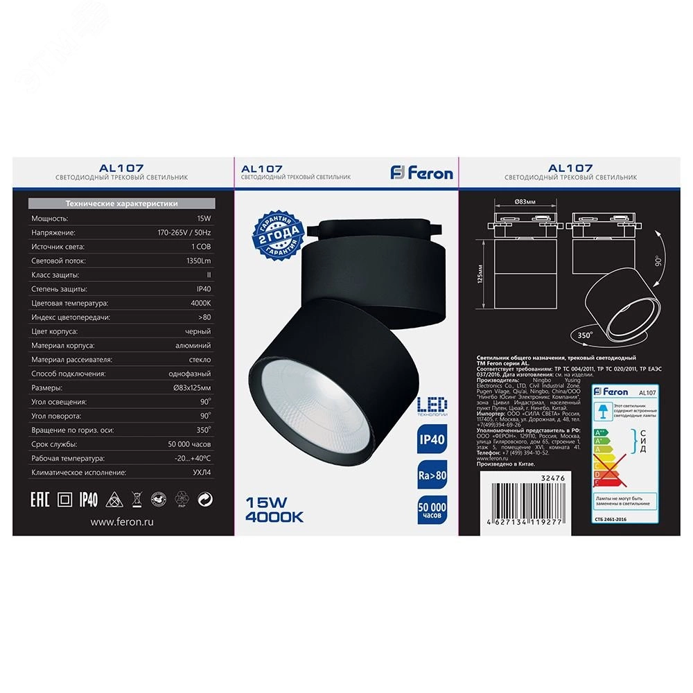 Светильник светодиодный трековый на шинопровод ДПО-15w 4000К 1350Лм черный