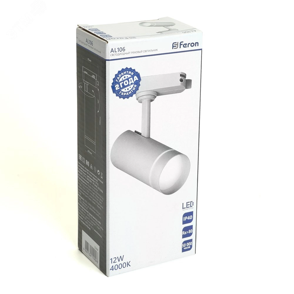 Трековые светодиодные светильники AL106 TM Feron предназначены для акцентной подсветки деталей интерьера, декоративной подсветки и художественного оформления жилых помещений. ОСОБЕННОСТИ:Светоотдача: 80 Lm/W и стабильная без деградации ''тускления'',Высокая цветопередача: >80,Удобство регулировки направления светового луча: светильник вращается на 350? по горизонтальной оси и на 90? по вертикальной оси