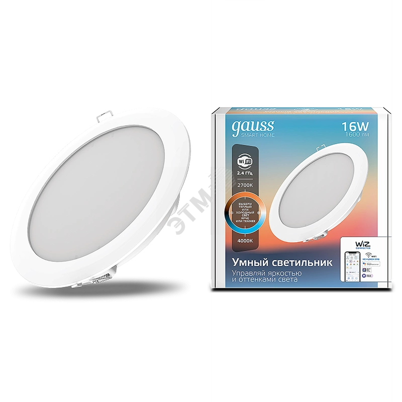 Встраиваемые светильники, или даунлайты, используются там, где требуется качественный направленный свет. В серии Gauss Smart Home представлены 4 даунлайта два с изменяемой яркостью мощностью 7 Вт и 16 Вт и еще два той же мощностью с изменяемой цветовой температурой в диапазоне от 2700 К до 4000 К, то есть от золотисто-желтого до натурального белого света. Светильники управляются по Wi-Fi через приложение WiZ Connected и c помощью голосовых помощников Алиса и Маруся. Возможности автоматизации включают с себя расписания, 14 режимов освещения, суточные ритмы, плавное включение и отключение.