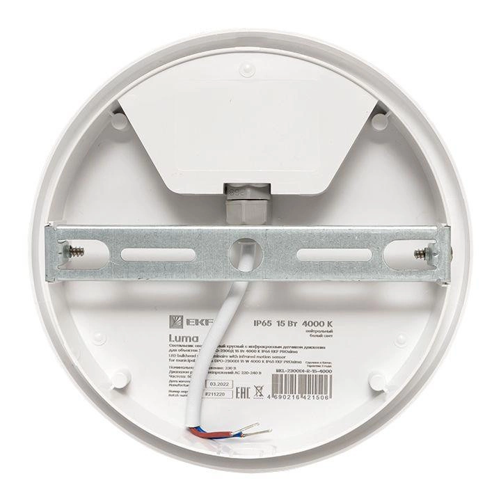 Полное описание: Светильник светодиодный ЖКХ круг ДПО-2300 15Вт 4000К IP65 с инфракрасным датчиком движения PROxima EKF BKL-2300DI-R-15-4000