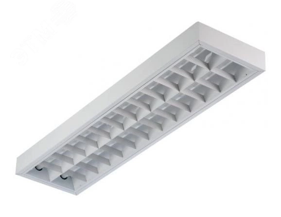 Светильник накладной, растр белого цвета, ЭПРА (класс энергосбережения EEI-A2) Helvar, и т.п., блок аварийного питания. Конструкция - корпус из листовой стали с полимерным покрытием белого цвета, оптическая система - растр ''классика'' из алюминия с белым глянцевым покрытием с высоким коэффициентом отражения, устанавливается в корпус и фиксируется специальными защелками. Крепятся непосредственно на поверхность потолка, либо на систему подвесов. Области применения - офисы, административные здания, магазины, учебные заведения, учреждения здравоохранения.