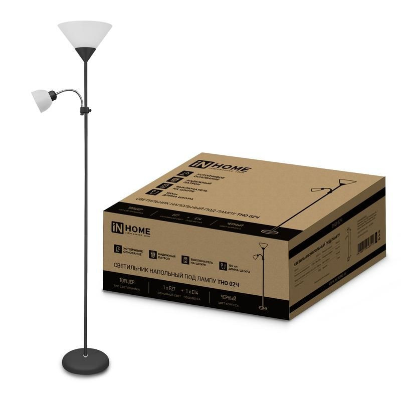 Полное описание: Светильник ТНО 02Ч 60Вт E27/E14 230В торшер напольный под лампу на основании черн. IN HOME 4690612048512