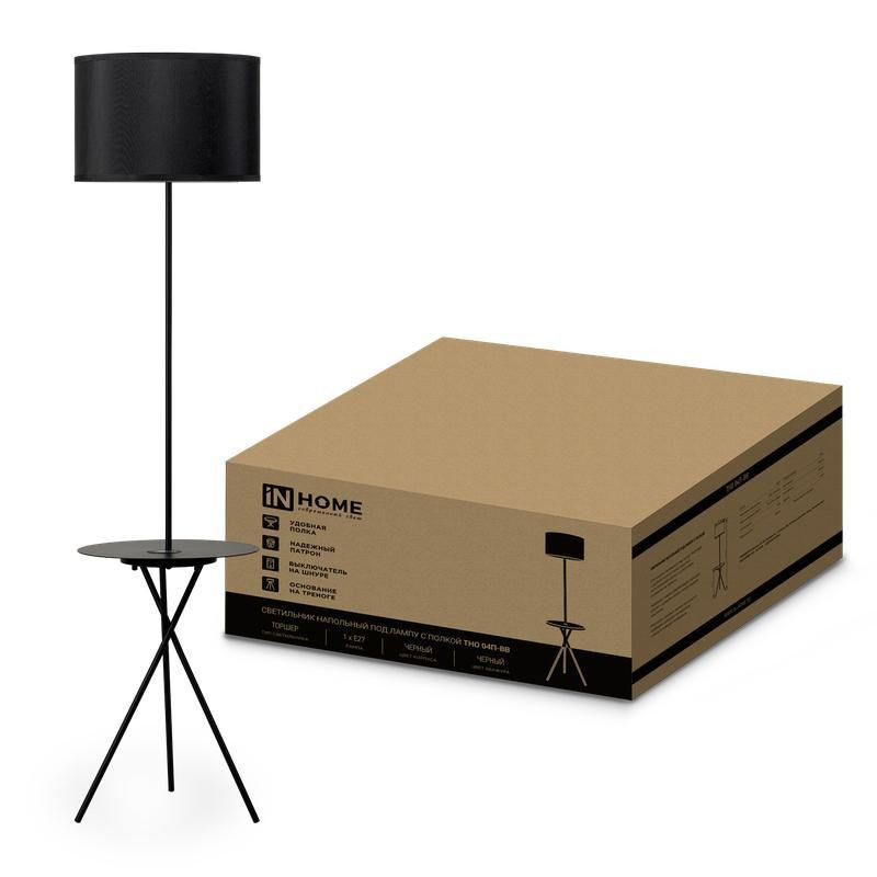 Полное описание: Светильник ТНО 04П-ВB 60Вт E27 230В торшер напольный под лампу на основании с полкой черн. IN HOME 4690612049649