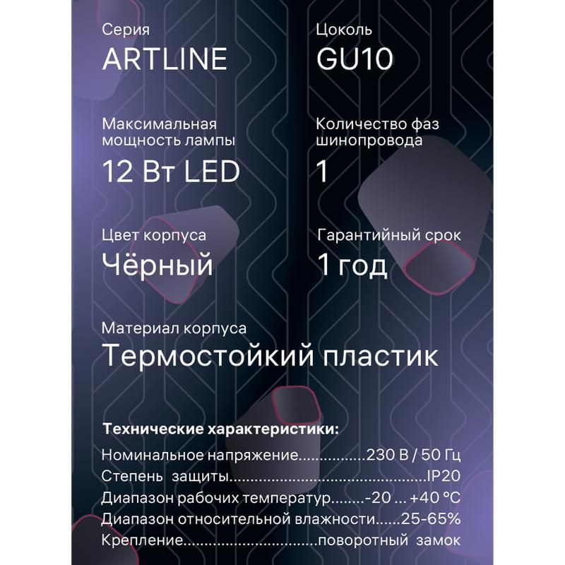 Полное описание: Светильник трековый ARTLINE поворотный 55х55х87мм GU10 220В пластик 4кв.м черн. Ritter 59870 5
