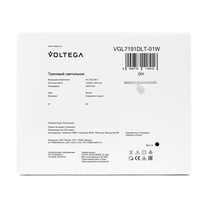 Полное описание: Светильник трековый Flip 15Вт GX53х1 IP20 Voltega VGL7191DLT-01W