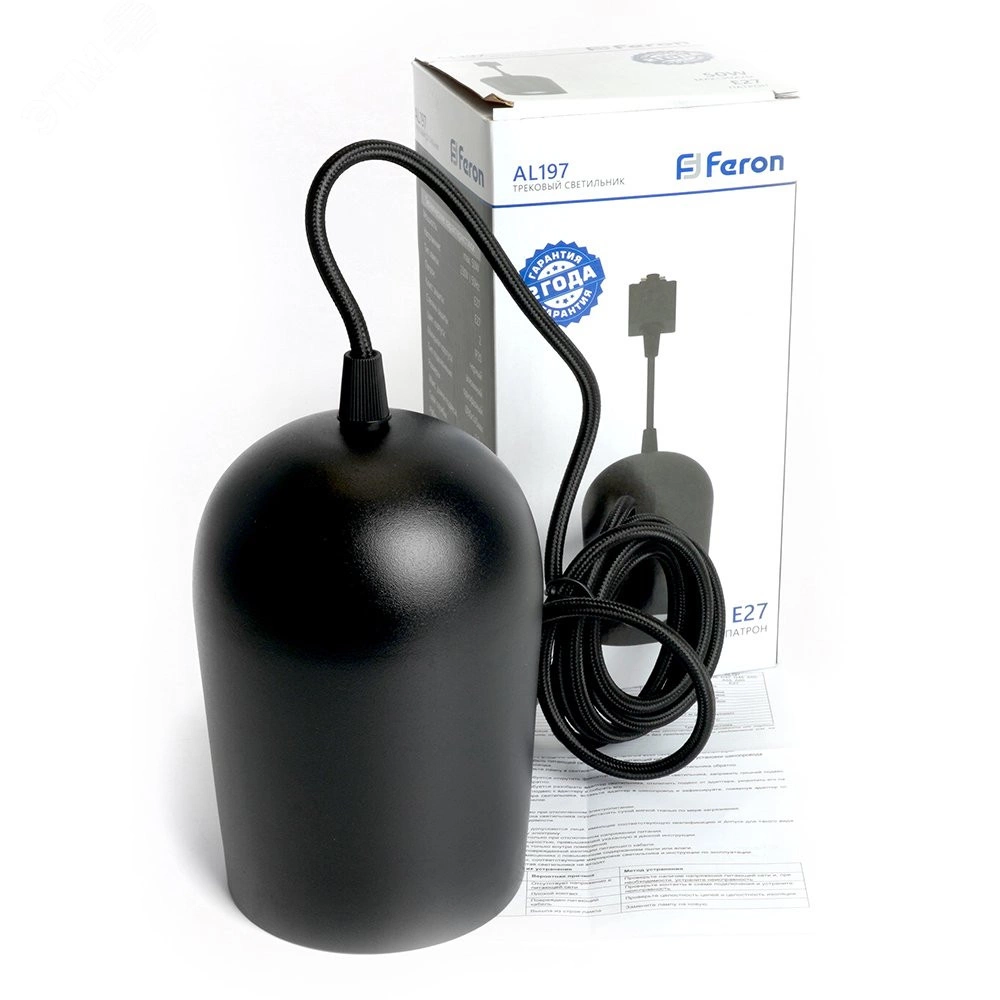Светильник трековый на шинопровод ДПО Е27 без лампы на подвесе черный