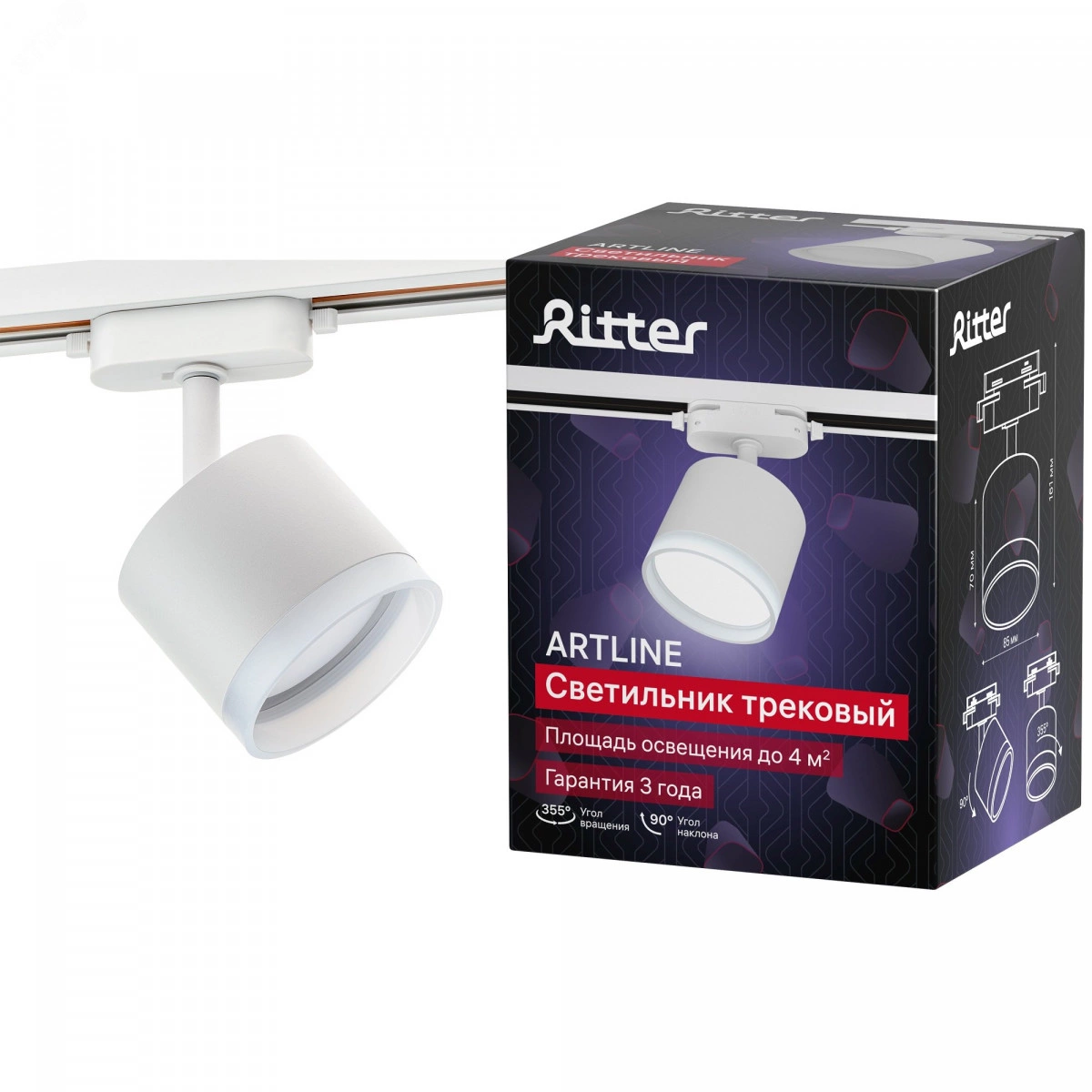 Светильник трековый, накладной, ARTLINE, поворотный, цилиндр, 85х85х70mm, GX53, 230В, алюминий/пластик, 4м, белый, 59861 3, Ritter