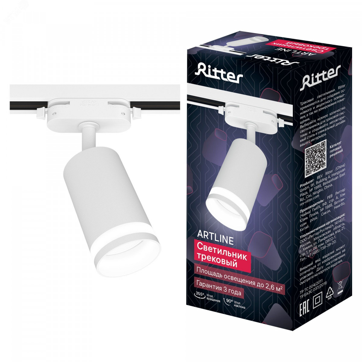 Светильник трековый, накладной, ARTLINE, поворотный, цилиндр, 55х55х100mm, GU10, 230В, алюминий/пластик, 4м, белый, 59879 8, Ritter