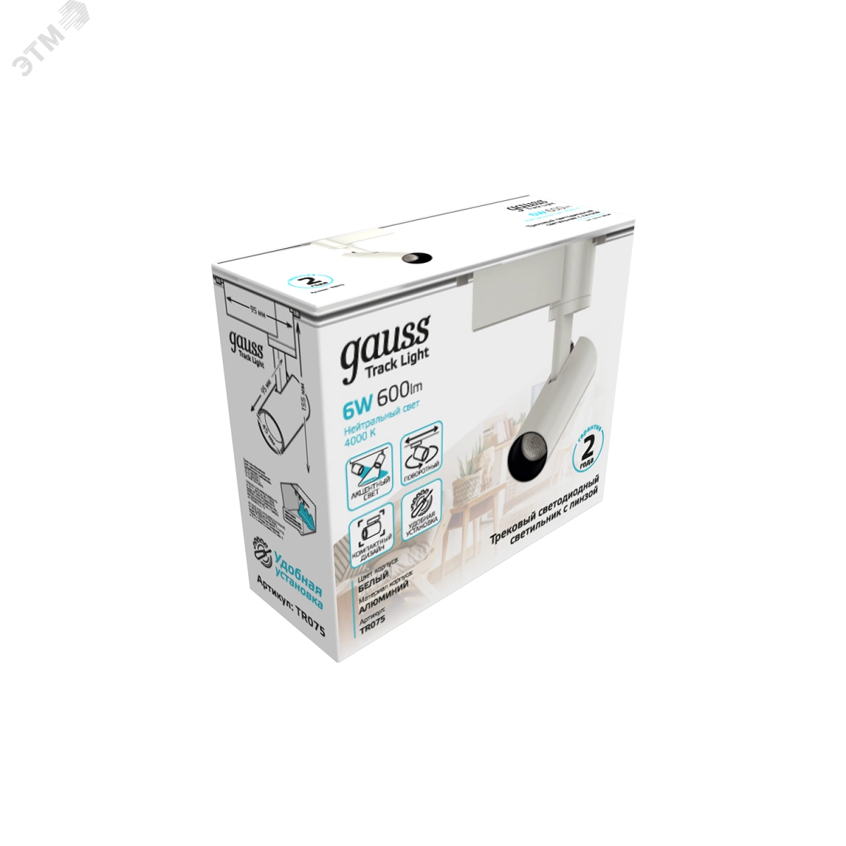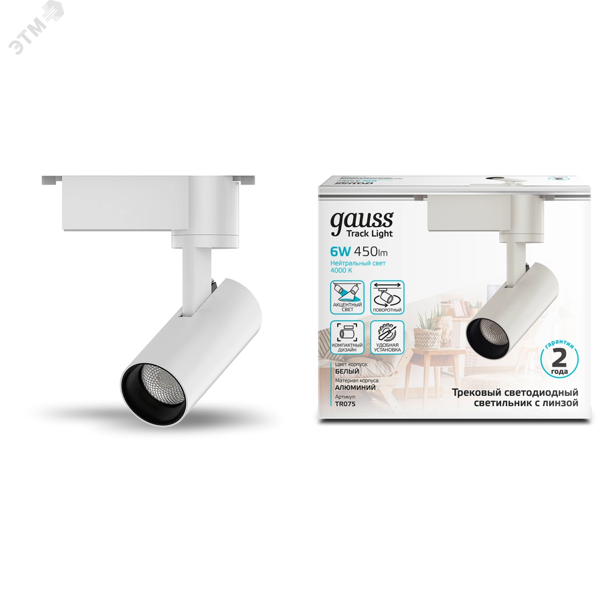 Светильник трековый однофазный ДПО LED-6 Вт 600 Лм 4000K IP20 белый 45х155 мм цилиндр линза 36 грд 180-220 В Track Gauss