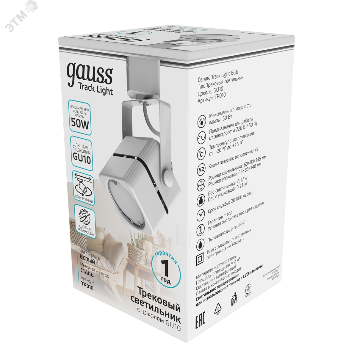 Светильник трековый однофазный ДПО под лампу GU10 IP20 белый 60х145 мм куб 220 В Track Gauss