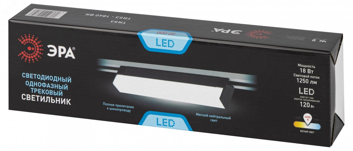 Светильник трековый однофазный TR53 - 1840 BK 18W 4000K 30см Черный ЭРА
