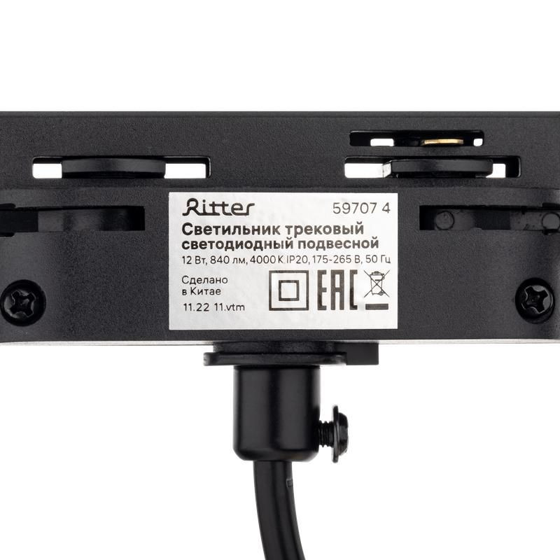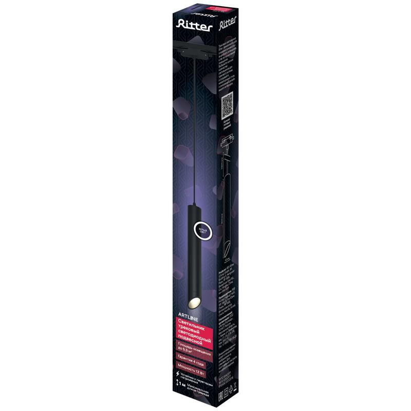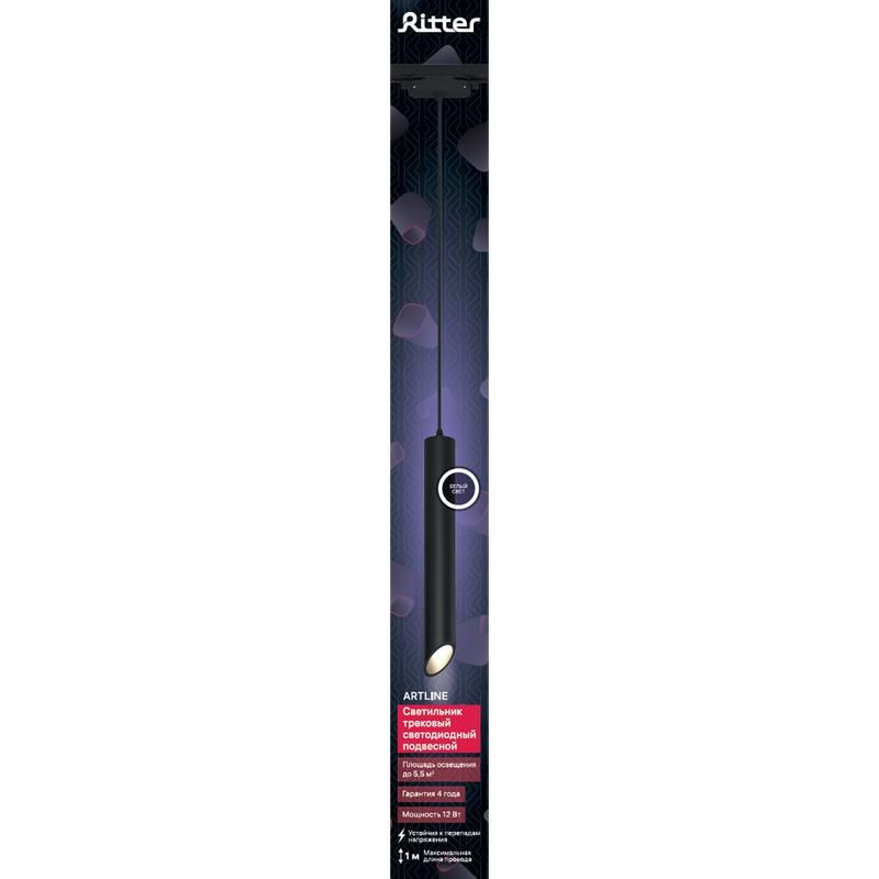 Светильник трековый подвес светодиодный ARTLINE 40х40х300мм 12Вт 840Лм 4000К 230В алюм. 5.5кв.м черн. Ritter 59707 4