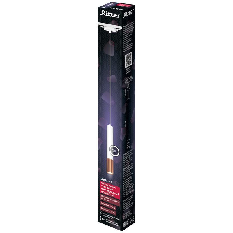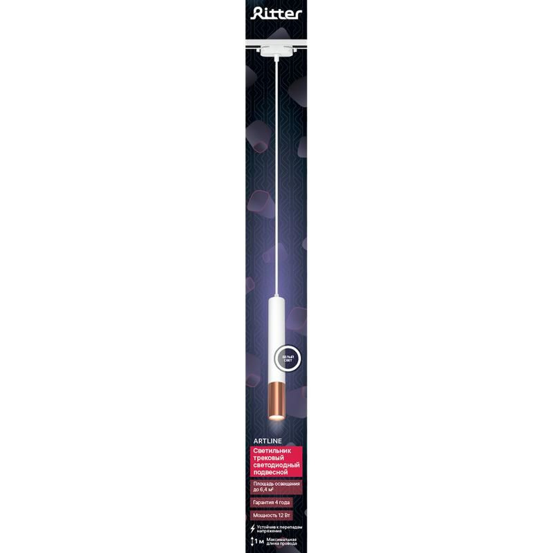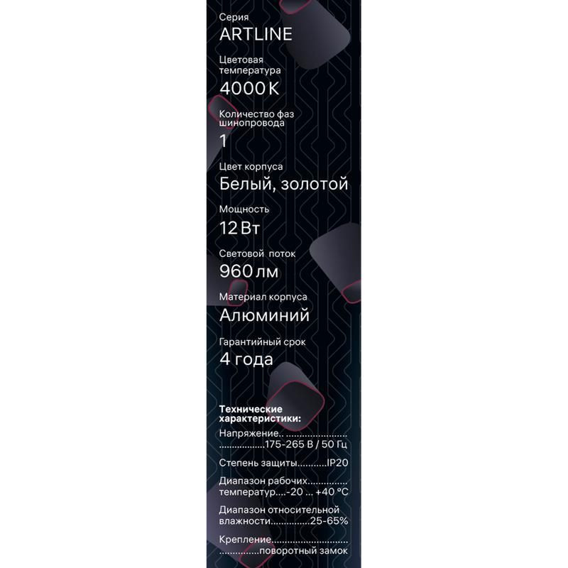 Светильник трековый подвес светодиодный ARTLINE 40х40х300мм 12Вт 960Лм 4000К 230В алюм. 6.4кв.м бел./зол. Ritter 59710 4