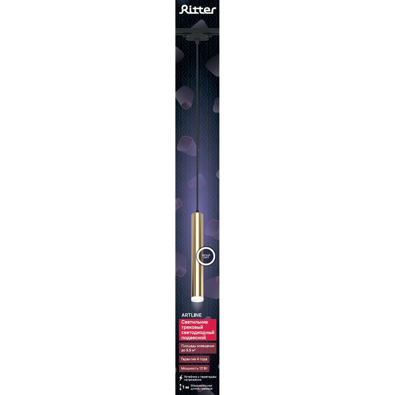 Светильник трековый подвес светодиодный ARTLINE 40х40х300мм 12Вт 840Лм 4000К 230В алюм./пластик. 5.5кв.м зол. Ritter 59714 2