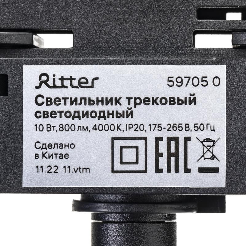 Полное описание: Светильник трековый поворотный светодиодный ARTLINE 55х55х200 10Вт 800Лм 4000К 230В алюм. 5.3кв.м черн. Ritter 59705 0