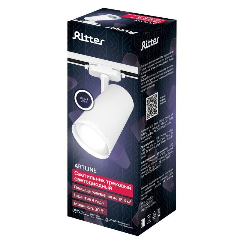 Полное описание: Светильник трековый светодиодный ARTLINE поворотный 80х80х170мм 30Вт 2380Лм 4000К 230В алюм. 15.5кв.м бел. Ritter 59739 5