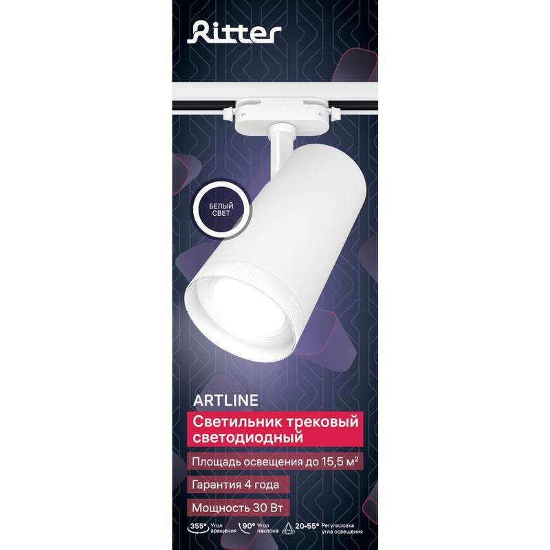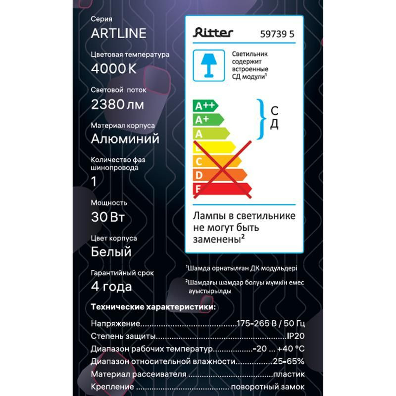 Светильник трековый светодиодный ARTLINE поворотный 80х80х170мм 30Вт 2380Лм 4000К 230В алюм. 15.5кв.м бел. Ritter 59739 5