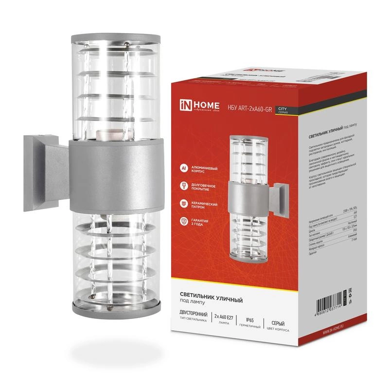 Полное описание: Светильник уличный двусторонний НБУ ART-2хA60-GR алюм. под лампу 2хA60 E27 230В CITY IP65 сер. IN HOME 4690612037714