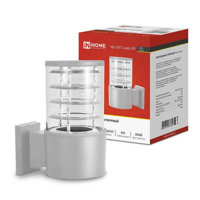 Полное описание: Светильник уличный односторонний НБУ ART-1хA60-GR алюм. под лампу 1хA60 E27 230В CITY IP65 сер. IN HOME 4690612037622
