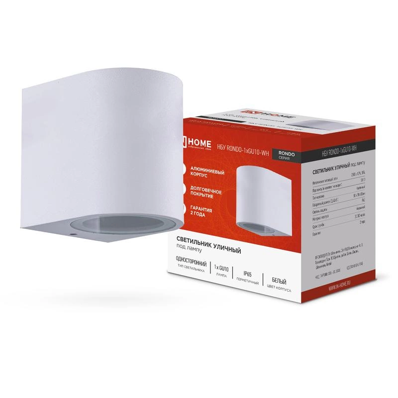 Полное описание: Светильник уличный односторонний НБУ RONDO-1хGU10-WH алюминиевый под лампу 1хGU10 IP65 бел. IN HOME 4690612044699