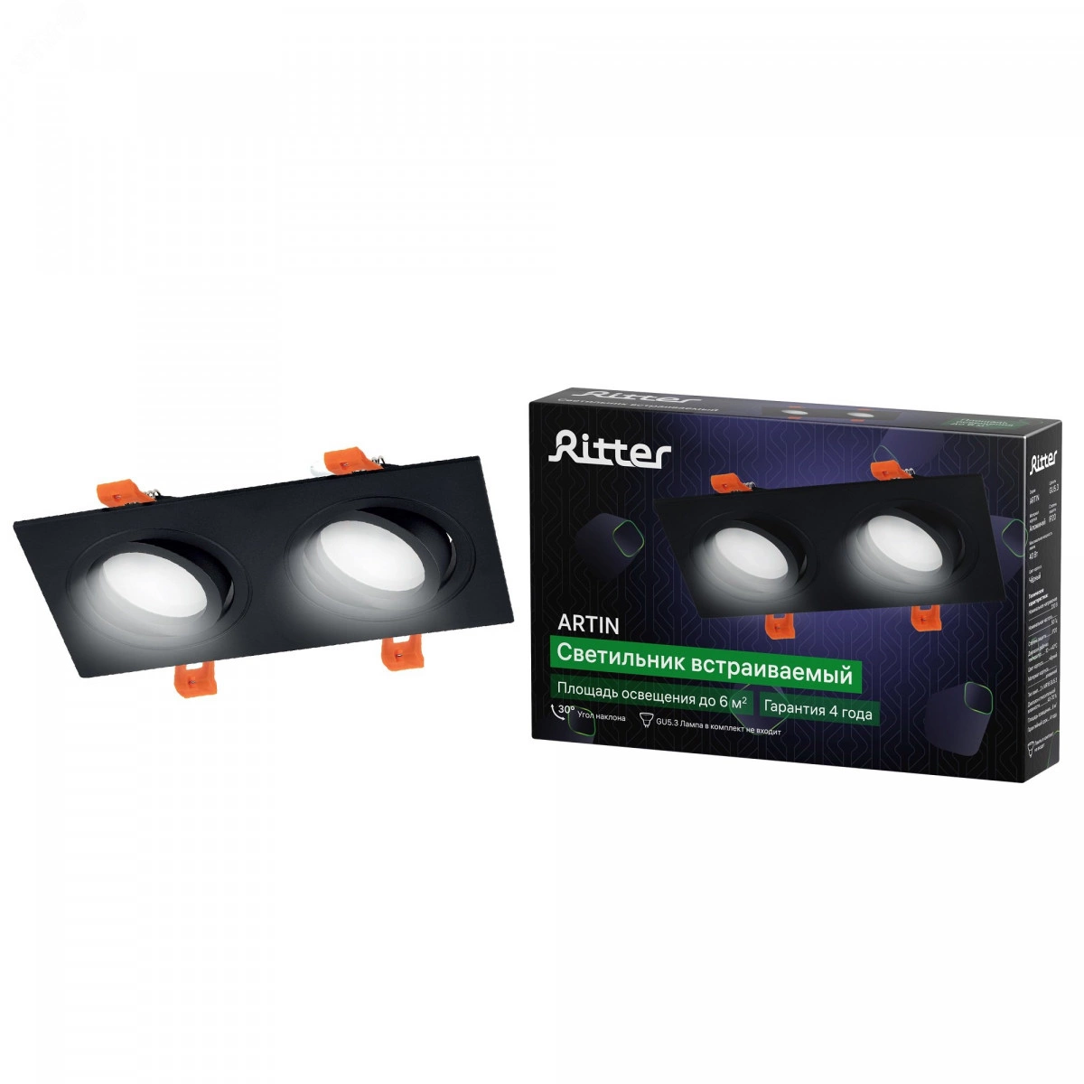 Светильник встраиваемый, ARTIN, прямоугольник, 175х94х25мм, монтажное отверстие 75х150мм, 2хGU5.3, алюминий, черный, 51426 8, Ritter