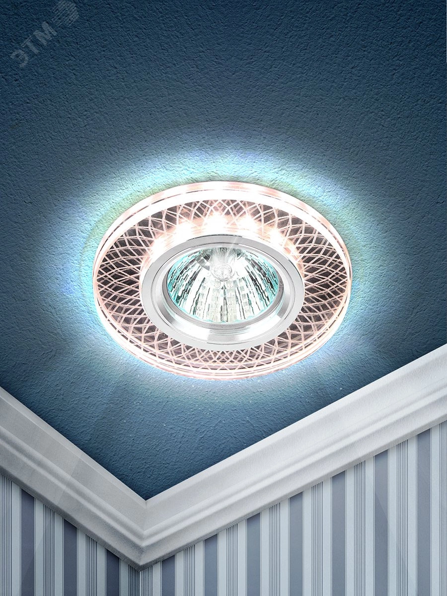 Светильник встраиваемый со светодиодной подсветкой DK LD43 TEA 3D /1, цвет светильника белый/белый, цоколь GU5.3 Лампа в комплект не входит. Для основного и акцентного освещения жилых и офисных помещений.