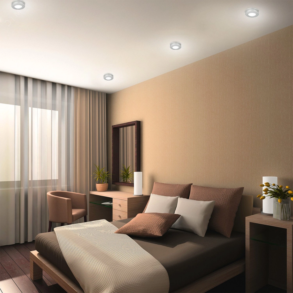 Ультратонкие светильники соответствуют минималистичному стилю, а благодаря подсветке без основного света ваше помещение превращается в уютное, спокойное пространство, особенно осенними вечерами. Управление светильником реализуется через штатный выключатель и не требует дополнительных устройств дистанционного регулирования. Еще один фактор в пользу выбора данной модели - простота монтирования в любую потолочную поверхность, так как светильники оснащены удобными и надежными клипсами. Устройство представлено в двух форм-факторах - квадрат и круг, что расширяет область применения. Светильник имеет несколько сценариев использования: 1) только лампа, которую вы будете использовать в цоколе, 2) светодиодная подсветка 3000К, 3) лампа + светодиодная подсветка 3000К.