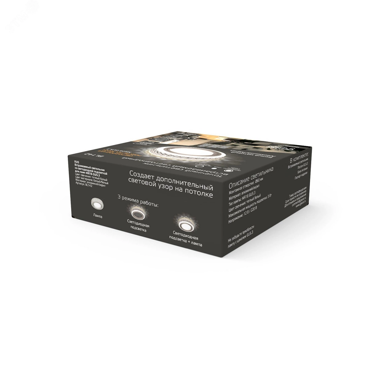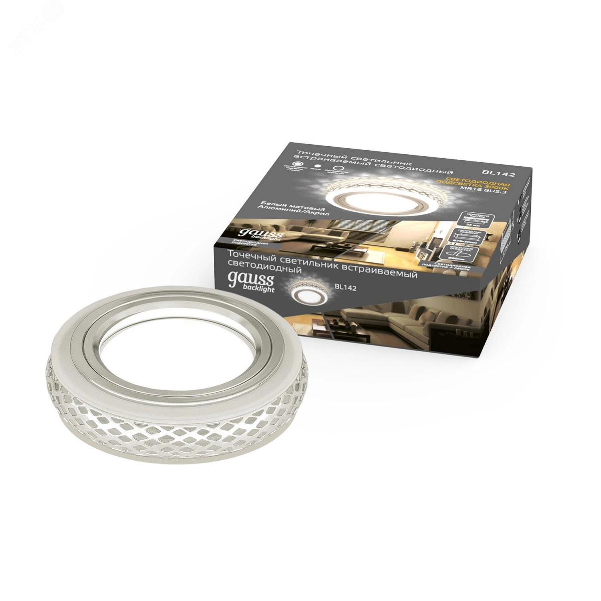 Светильник встраиваемый ДВО под лампу 3 Вт (max) 3000К IP20 d80х25 мм монт d60 мм Backlight Gauss