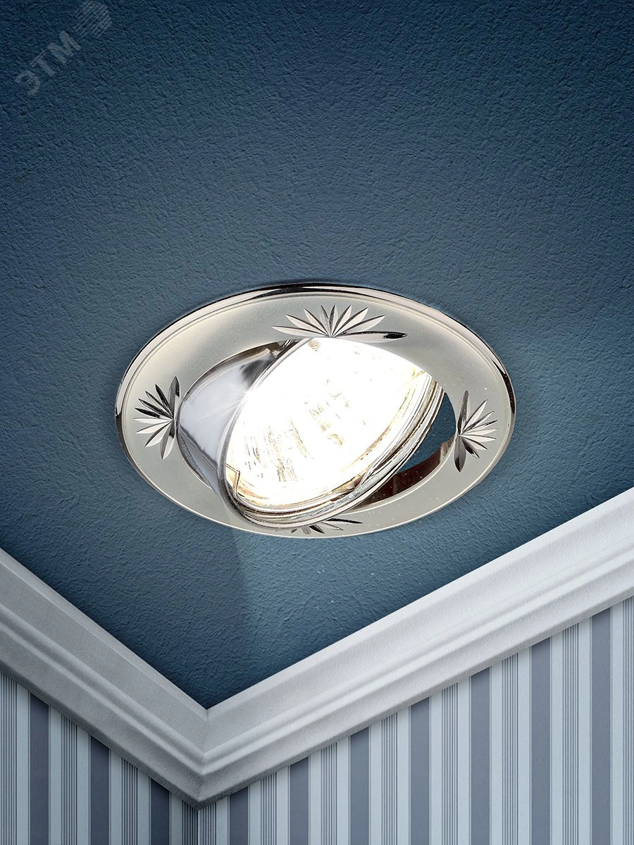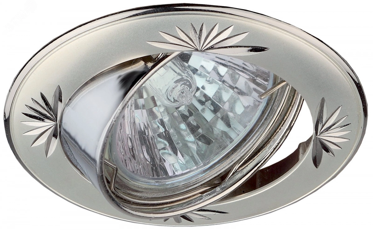 Светильник встраиваемый литой круглый поворотный с гравировкой MR16 KL3A PS/N ,12V/220V, 50W перламутровое серебро/никель ЭРА