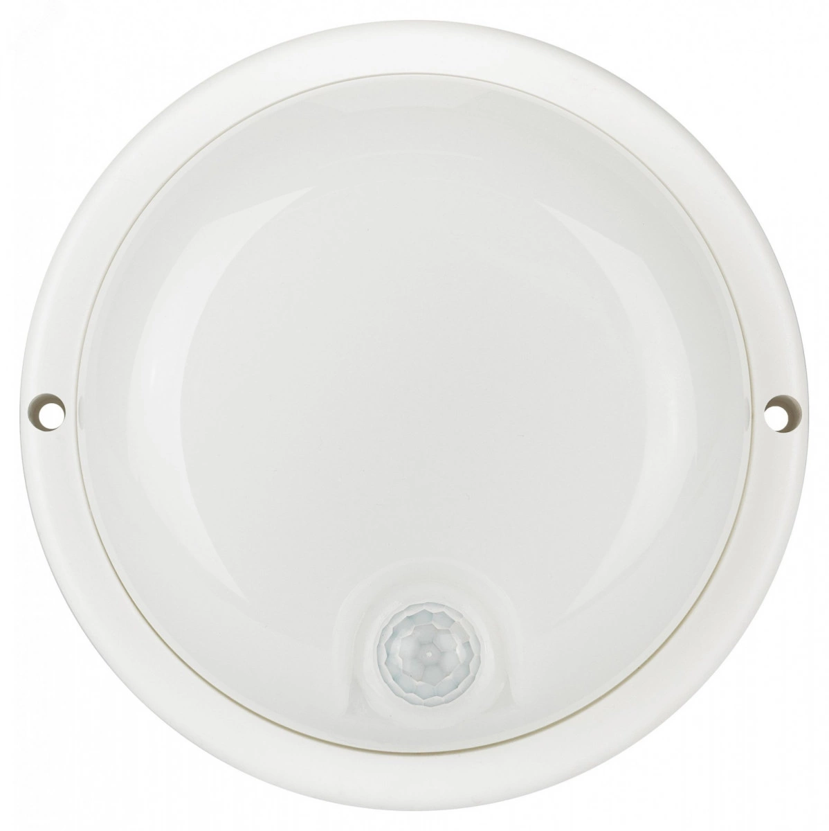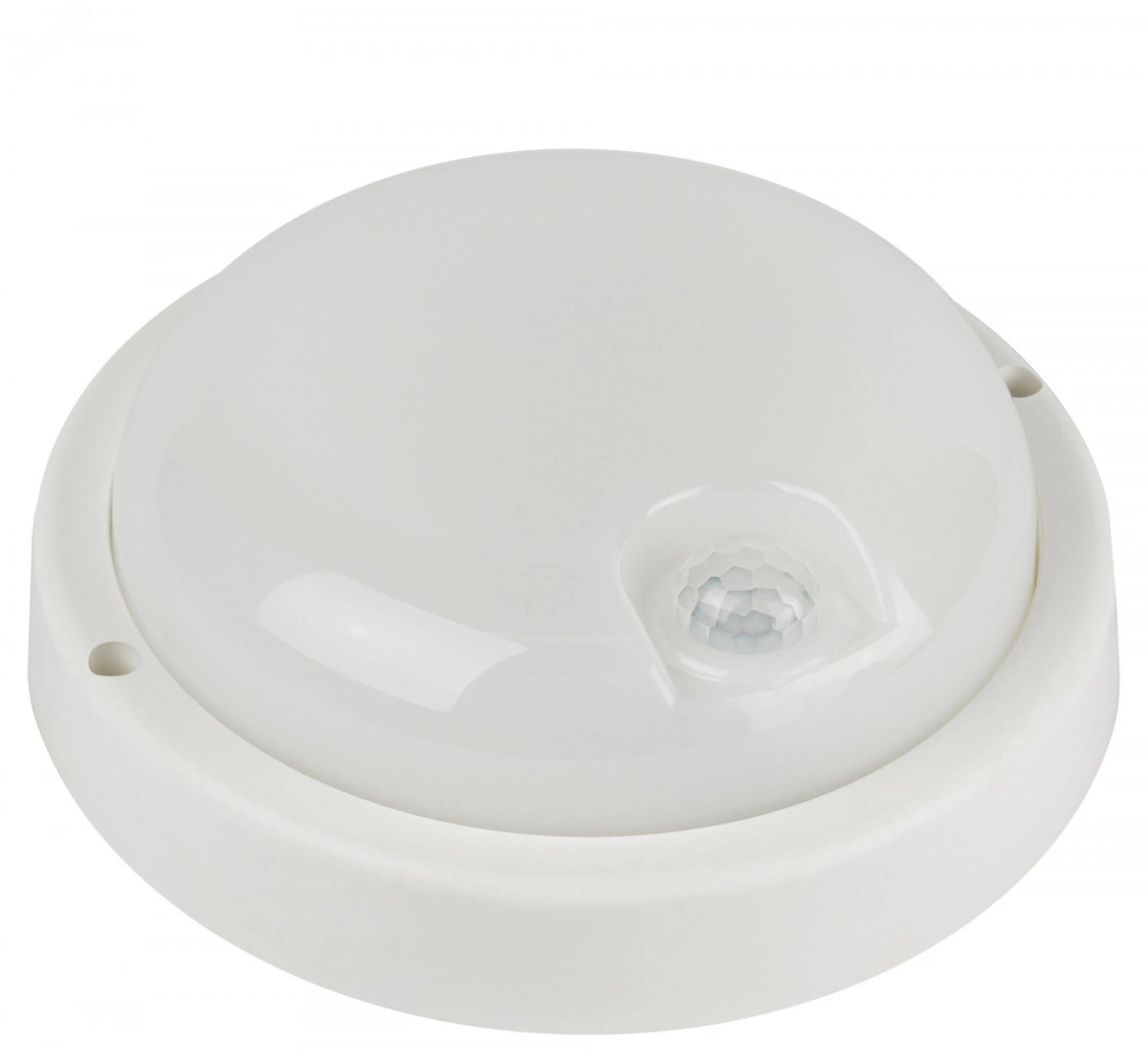 Пылевлагозащищённый светодиодный светильник (степень защиты IP65) круглой формы. Оснащён инфракрасным датчиком движения. Этот светильник идеален для освещения блока ЖКХ, гаражей, балконов, а также других помещений с повышенной влажностью.