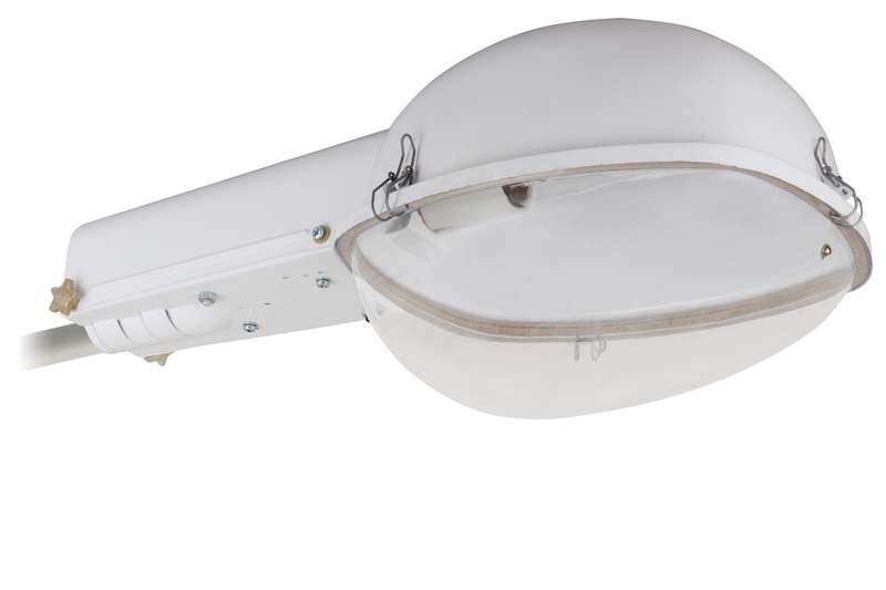 Корпус стальной, окрашен, защитное стекло изготовлено из ударопрочного поликарбоната, устойчивого к УФ-лучам и климатическому воздействию (IP53). С ЭМПРА и патроном с цоколем Е40.