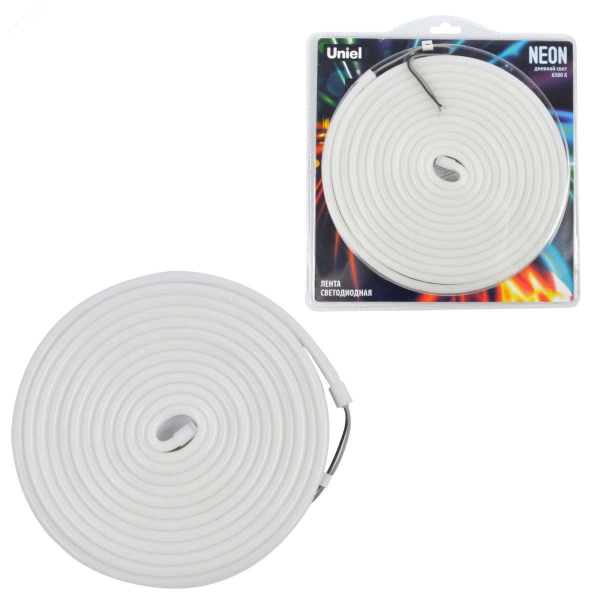 Светодиодная гибкая герметичная лента. NEON ULS-N03-2835-100LED/m-8mm-IP67-DC12V-11W/m-5M-6500K катушка 5м в блистере дневной белый свет 6500K