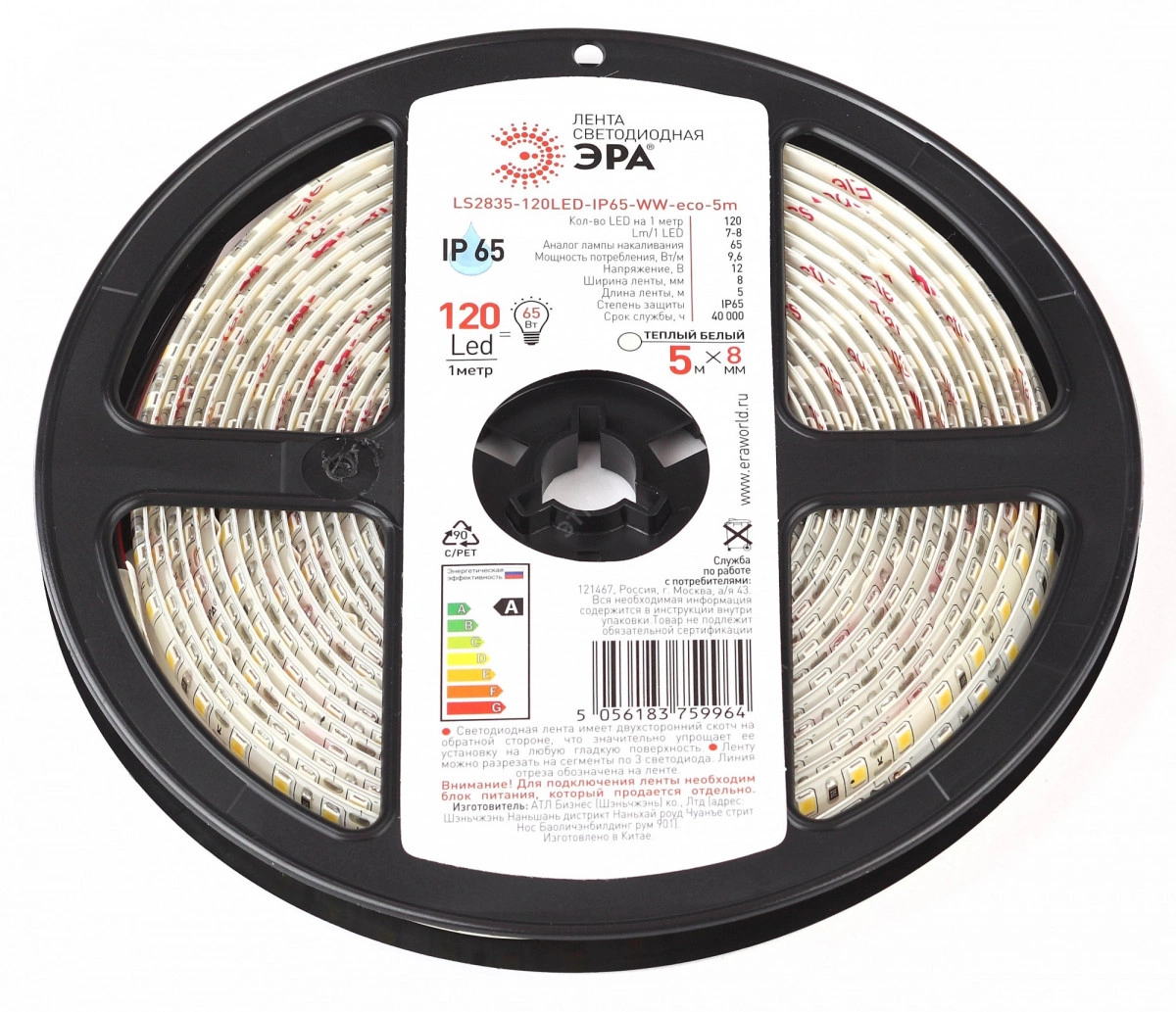 Светодиодная лента LS2835-120LED-IP65-WW-eco-5m 12В ЭРА