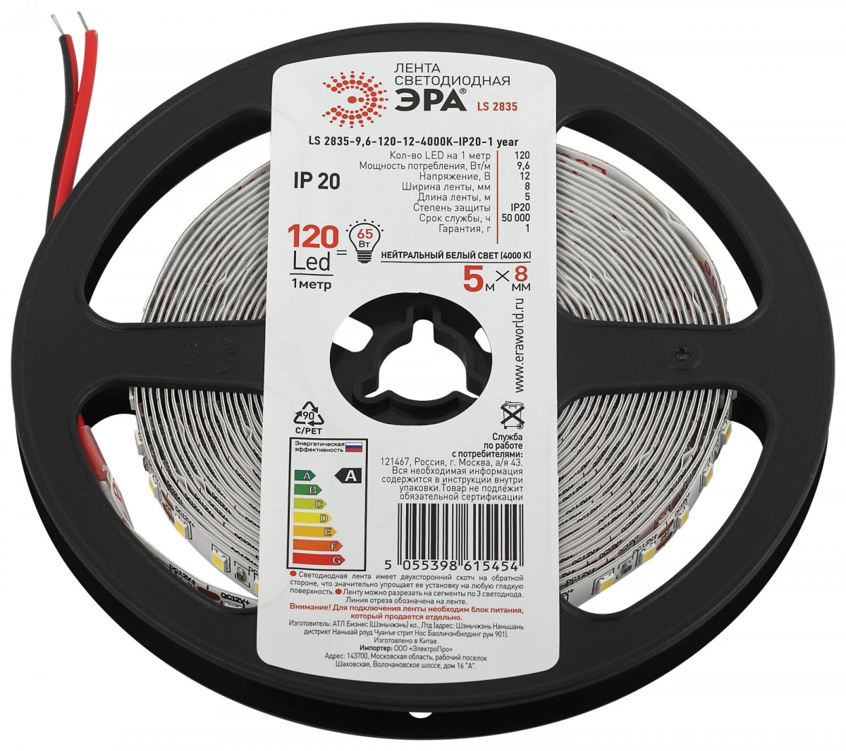 Полное описание: Светодиодная лента LS2835 9,6-120-12-4000K-IP20-1 year белая 5м
