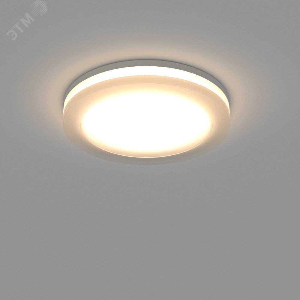 Круглый светильник с контурным свечением. Корпус IP44 белый плюс вставка поликарбонат PC. Цвет БЕЛЫЙ ТЁПЛЫЙ 3000К, св.поток 400 лм, угол 120 градусов плюс180 градусов . Питание 180-240VAC (драйвер в к-те 300mA 11-25V), мощность 5Вт. Размеры 80х40 мм, установка в отв.65 мм, высота мин.40 мм.