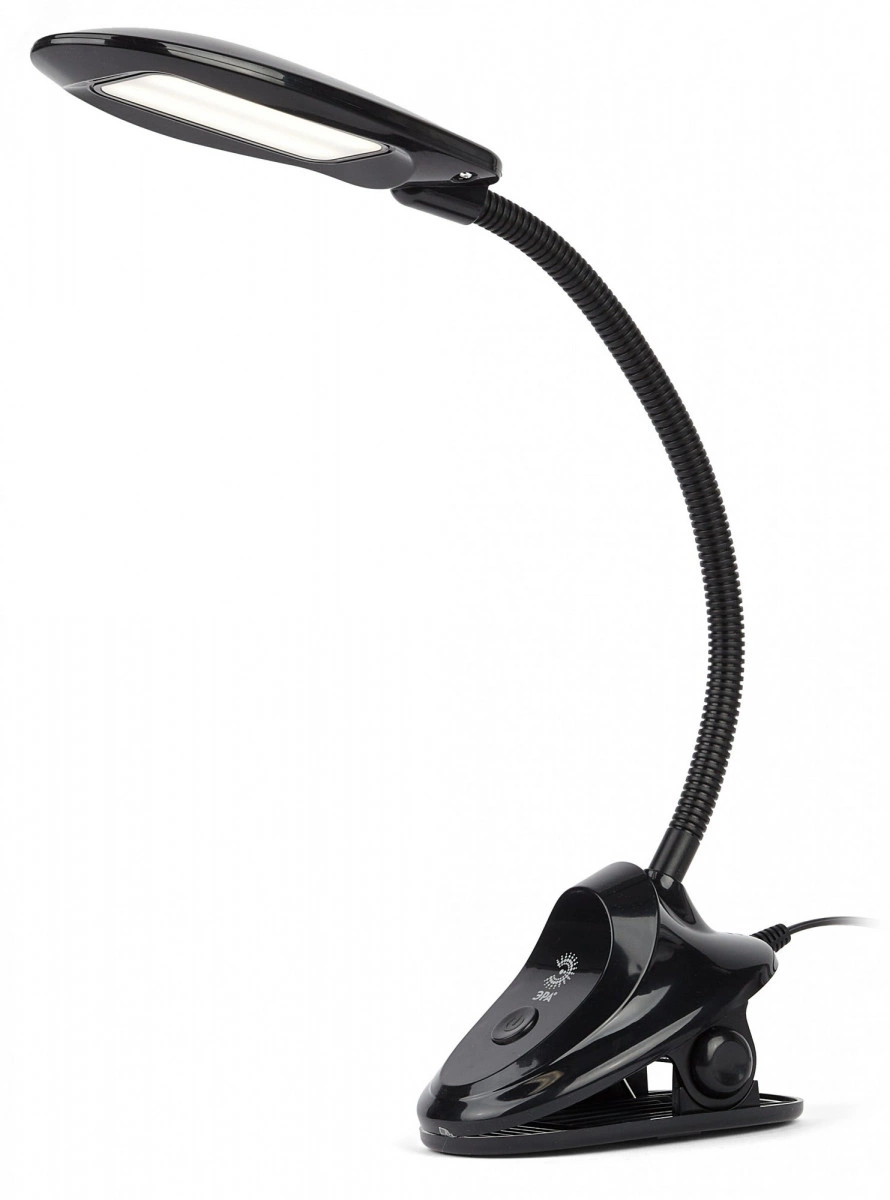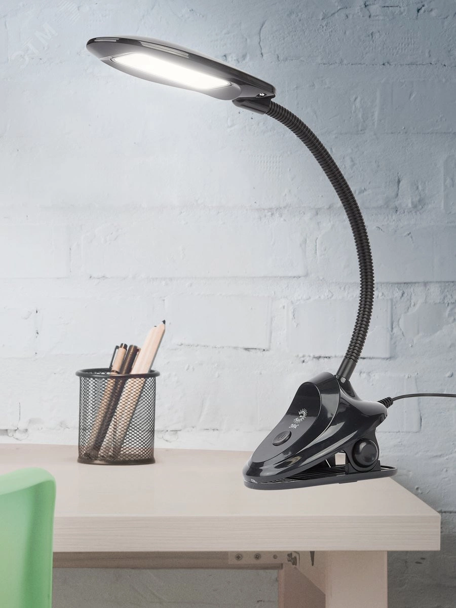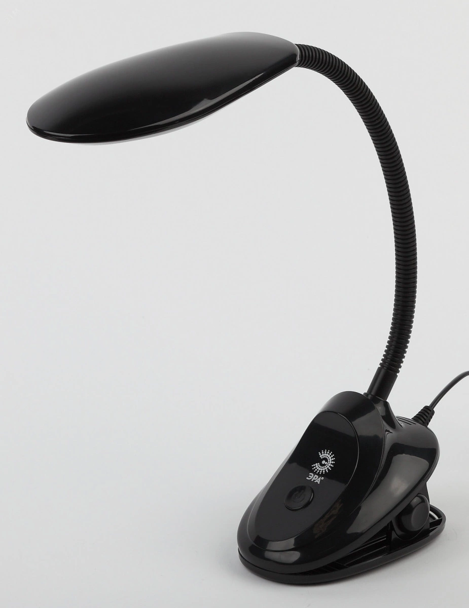 Настольный светильник-прищепка ЭРА NLED-478-8W-BK со светодиодами (LED) в качестве источников света. У светильника выключатель на основании. Это базовая модель с оптимальным универсальным дизайном хорошей для работы за столом высоты. Гибкая стойка позволяет выбирать наиболее комфортное направление света.